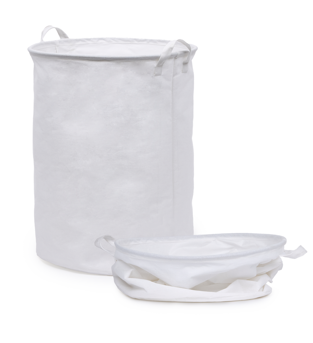 The hamper can be collapsed and stored away when not in use and easily pops back up, while always keeping its shape.